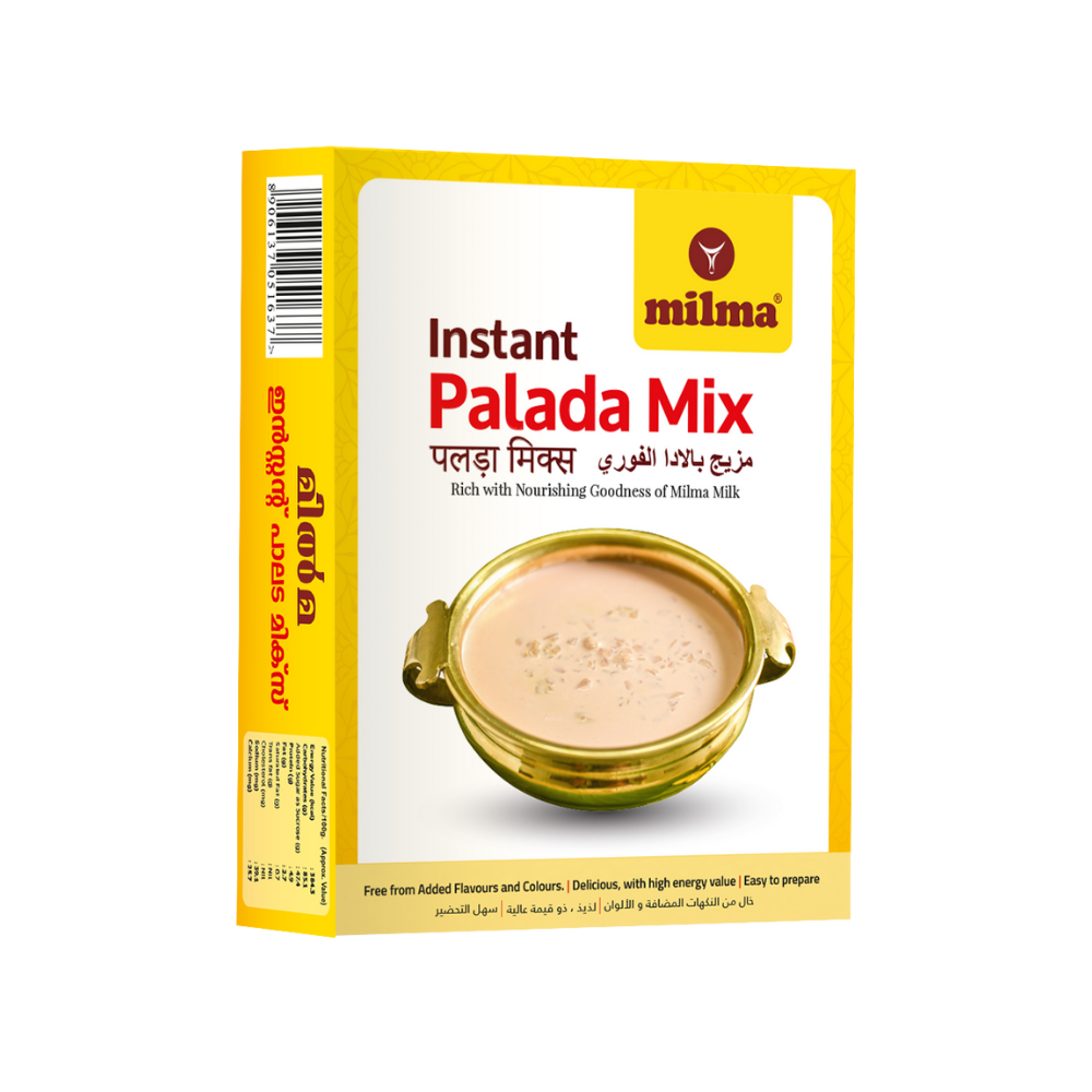 Palada Payasam is a traditional delicacy of Kerala the preparation of which is laborious time consuming and requires professional skill. It is made by concentrating high fat milk rice granules and sugar. Milma has standardized its own large scale production process for the instant palada mix which is made available in dry powder form. Milma palada payasam is easily prepared from this mix by simply mixing the palada mix with hot milk and heating the same for 10 minutes. Available in 200 gm packs. No artificial colours or flavours are used in the product.